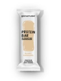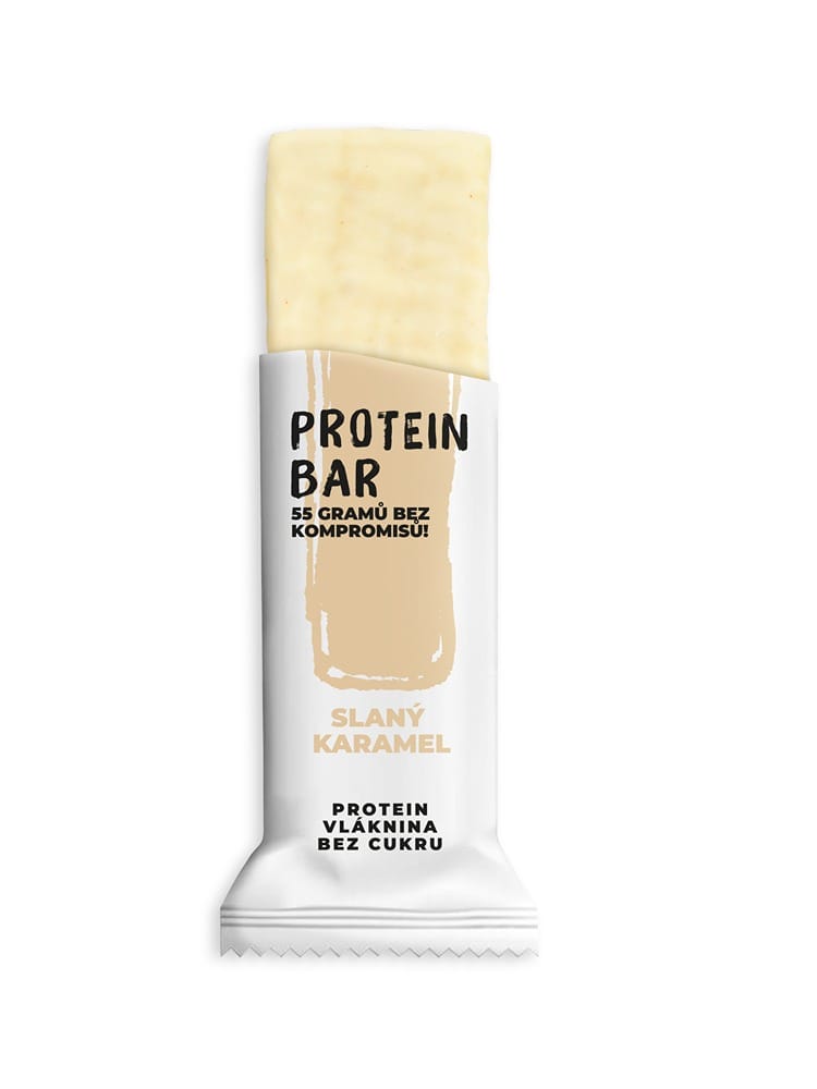 PROTEIN BAR Slaný karamel Výživové hodnoty na 100g: Energetická hodnota 1655 kJ / 395 kcal, Tuky 20 g, z toho nasycené 5,5 g, Sacharidy 22,5 g, z toho cukry 6,7 g, Vláknina 20,3 g, Bílkoviny 25,6 g, Sůl 0,2 g